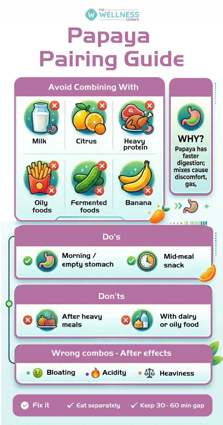 Papaya itself is easy to digest, but incorrect combinations may cause discomfort in some people.