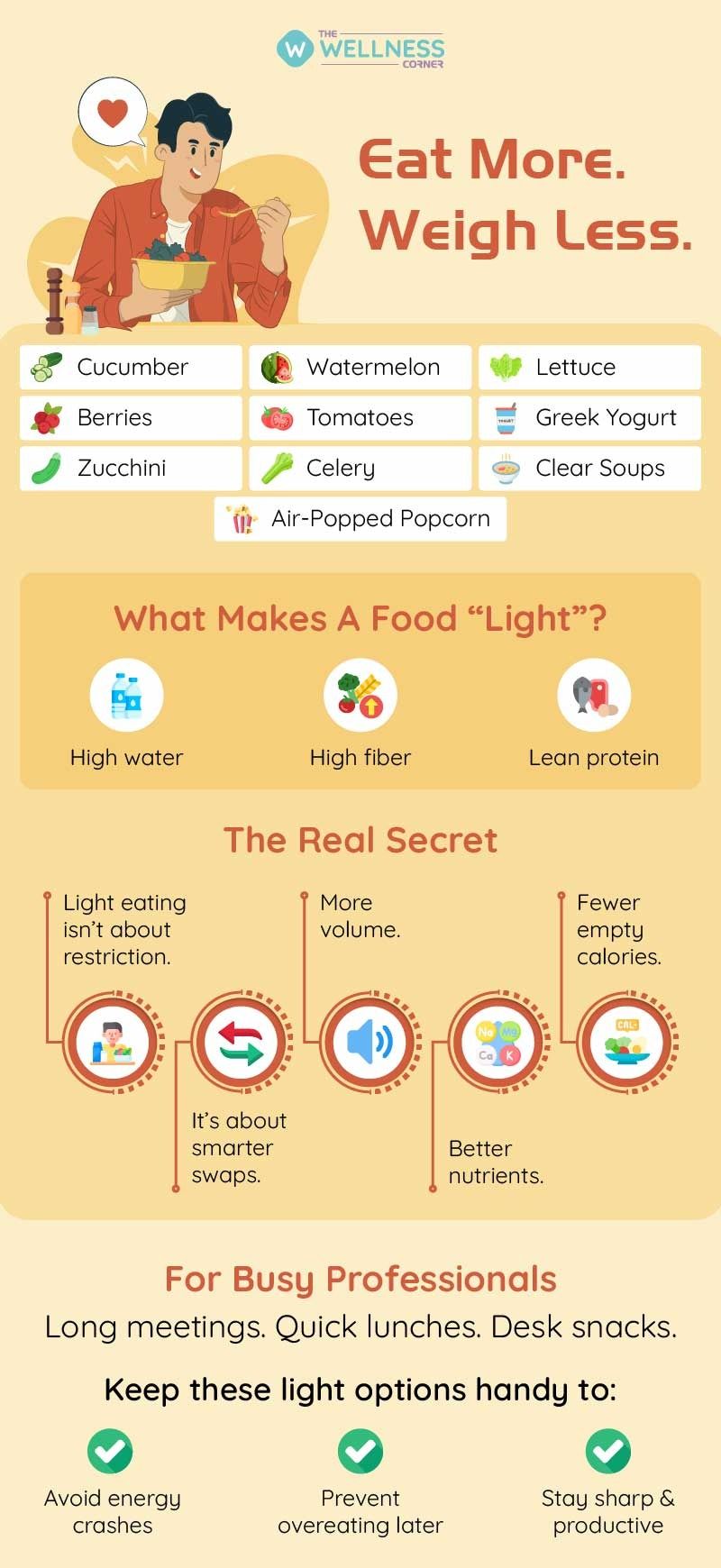 Even light foods should be eaten mindfully. While they are lower in calories, portion awareness still matters for overall balance and digestion.