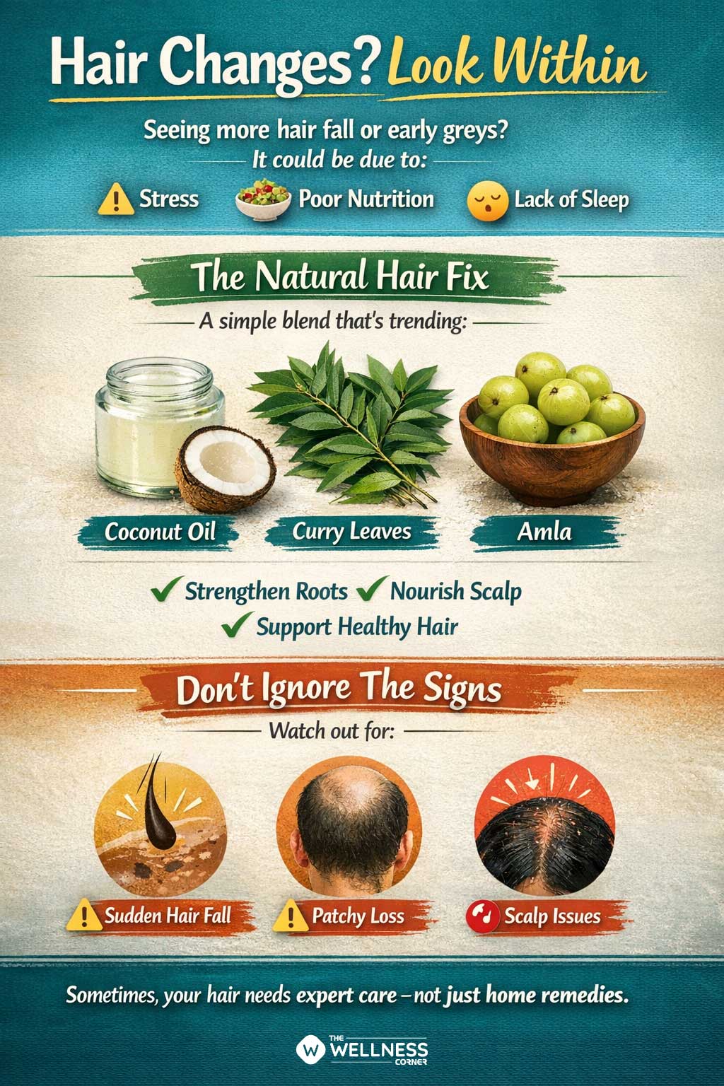 Instead of seeing white hair or hair fall as just cosmetic issues, consider them as reminders to slow down, nourish your body, and take better care of yourself.