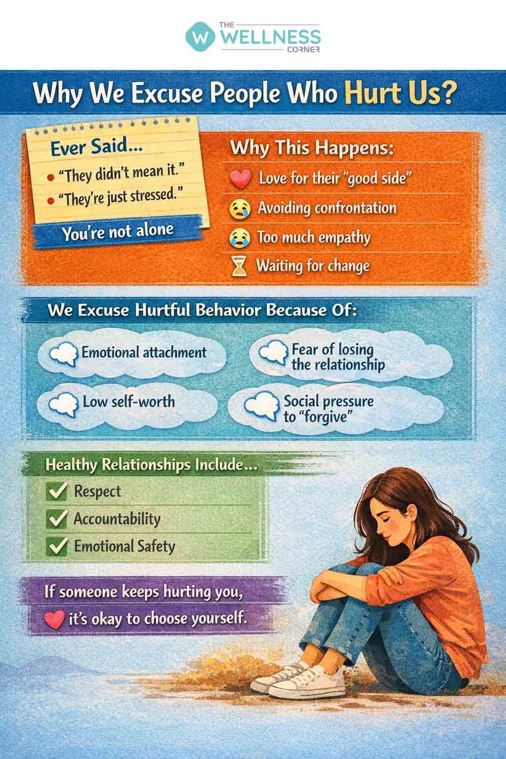 1. Why do people make excuses for someone who hurts them?